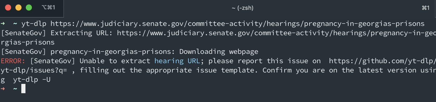 However the U.S Senate Committee on the Judiciary website makes things a bit more difficult. If we put in the url of the webpage that the video is located on we get the following error: